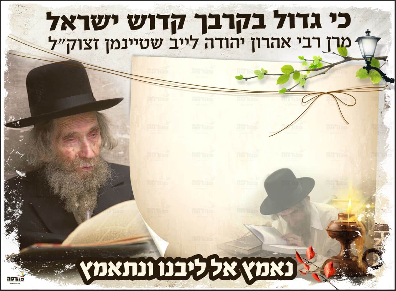 פנורמה > חנות > אלמנטים להורדה > מארז תמונה + דף רקע צבעוני – הרב שטיינמן // כסלו