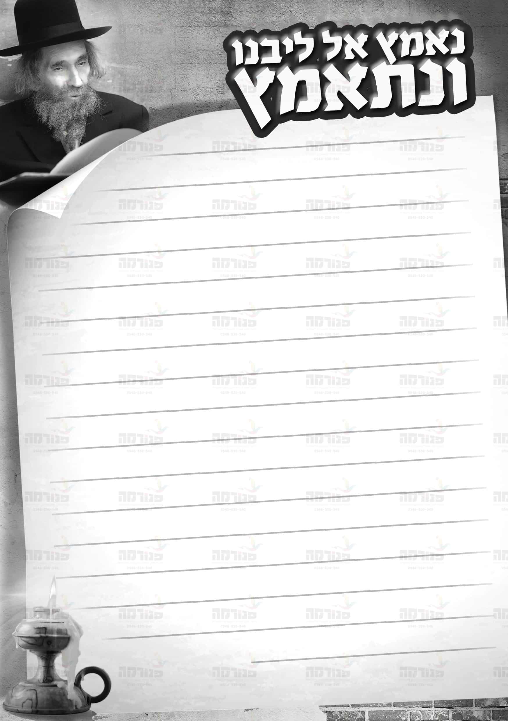 תוכלו לחלק דפי רקע של פנורמה לתלמידים שיכתבו עליהם סיפורים ומסרים מרבינו הבלתי נשכח.