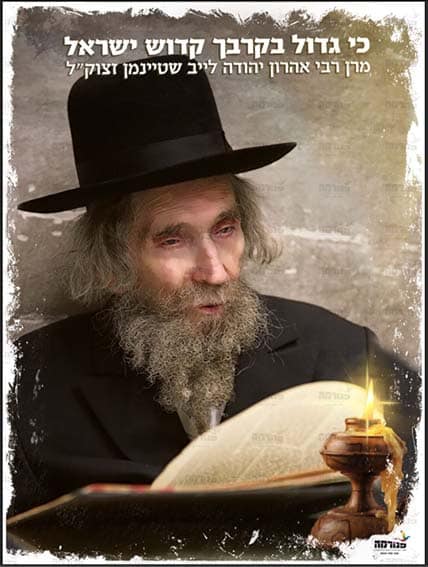 קבלו תמונת דיוקן מאירה ליום פטירתו של מרן הגראי”ל שטינמן זצוק”ל – נאמץ אל ליבנו ונתאמץ.